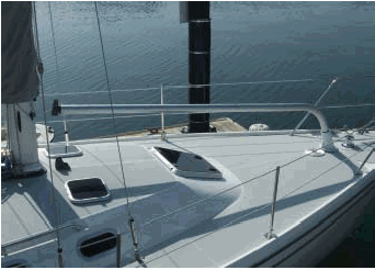 ’MyWay’:n alkuperäinen osatakila on sen verran löysä, että se ei todennäköisesti kestäisi mastonhuippupurjetta ilman lisävahvistuksia. En kuitenkaan halunnut ainakaan vielä laittaa maston yläpäähän lisäsaalinkiparia tai viulustaagia. Mastontekijää konsultoituani nostin spinnun nostimen trissan mastossa 70 cm etustaakin ja barduunoiden kiinnityspisteen yläpuolelle. Näin genaakkeri on fokan etupuolella, mikä auttaa purjeen käsittelyssä ja puhtaan tuulenkin saamisessa. Jalustaminen tulee normaaliin tapaan spinnun vinsseille. Kevyen tuulen vastatuuliosuuksia varten on genaakkerin skuutteihin ilmeisesti lisättävä barberit, jotta purjeen yläpäänkin muoto säilyisi kunnollisena. | ||